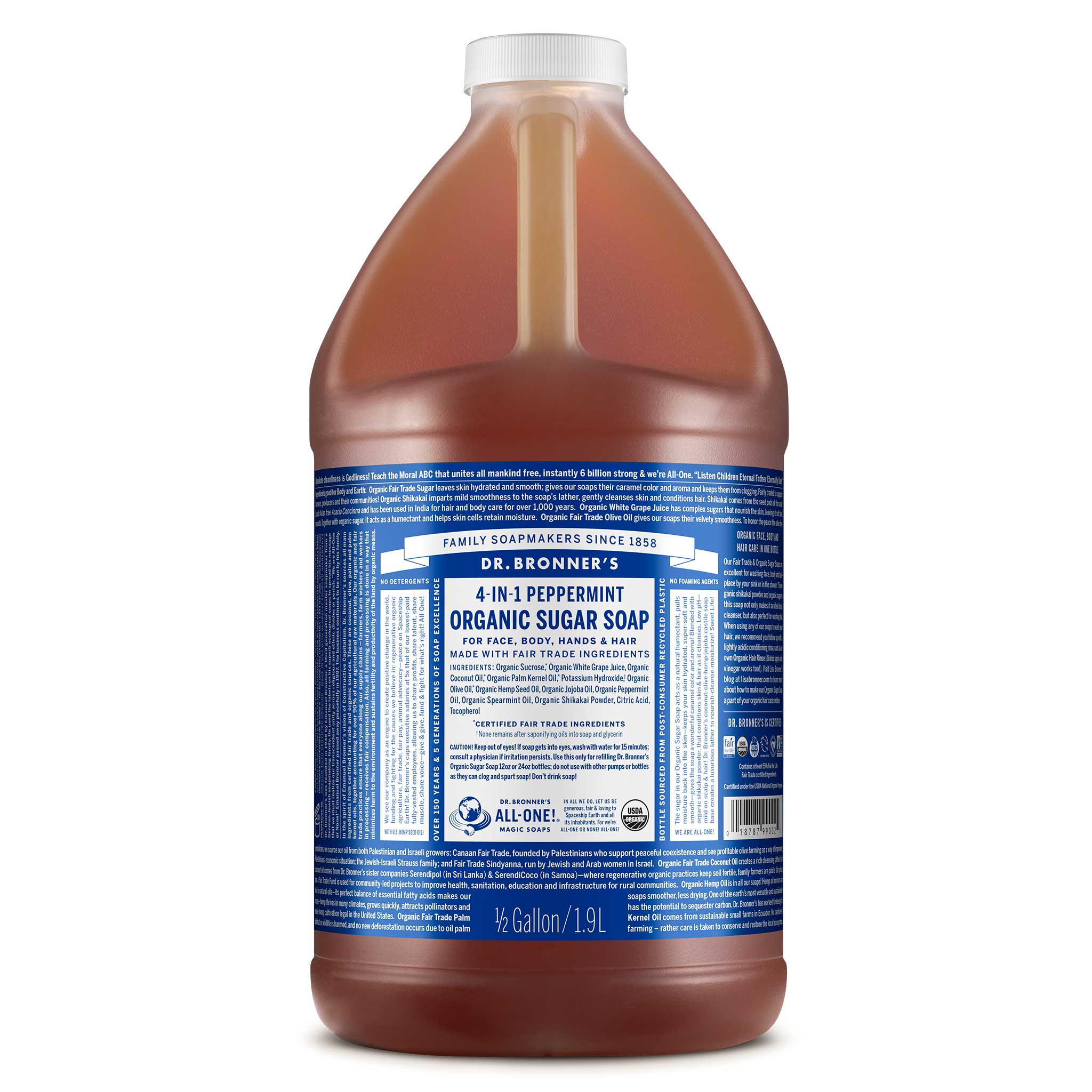 4-in-1 Organic Pump Soaps are good for washing hands, body & hair & place by your sink or in the shower! To wash hair work one pump of Organic Pump Soap into wet hair until it lathers, then rub and rinse. Repeat for thicker or longer hair. After washing, follow up with a lightly acidic conditioning rinse, like Dr. Bronner's Citrus Organic Hair Rinse to leave hair silky smooth! Don't have our Organic Hair Rinse? Use diluted apple cider vinegar or lemon juice! OK! Do not use this scent with children under three years old, as the tingle from the peppermint can be overwhelming for them.
